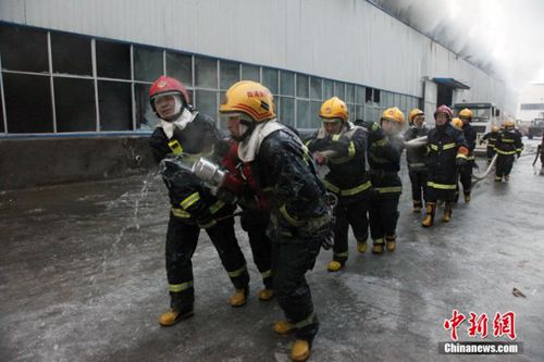 1月31日4時25分,西寧市昆侖東路東川經濟開發區23號青海鋁型材廠內一大型庫房失火。經過西寧市公安消防支隊156名救援人員近4個多小時撲救,大火被成功撲滅。據介紹,起火物質為房屋內存放的百貨,消防人員趕到現場時,火勢已處于處猛烈燃燒階段。為防止火勢蔓延,119一次性調集六個執勤中隊24輛消防車、156人及供水集團5部運水車趕赴現場參與滅火。中新社發黃開森 攝