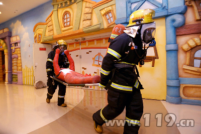 接到報警后,總隊立即調集7個消防中隊、14輛消防車趕赴火災現場。主戰中隊到場后,組成兩個偵察小組進行火情偵察,并根據現場情況制定滅火預案,組織開展滅火救援行動。此時,南岸支隊王義寬支隊長率全勤指揮部趕到現場,對現場組織引導,指定增援中隊停車、取水位置及進攻路線,并下達了作戰命令,幾分鐘后,內攻救援組、火場疏散組、滅火組、供水組、排煙組、照明組、破拆組、通信保障組及警戒組等各戰斗小組相繼展開,隨著滅火救援戰斗的深入,被困人員陸續被平安救出。現場總指揮下達總攻命令,各作戰小組對商場著火部位形成了圍攻。通過1個多小時的緊張戰斗,火勢被徹底撲滅,整個演練過程節奏緊張,有條不紊,取得圓滿成功。