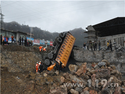 2月27日中午12點13分,貴州省金沙縣消防站接到群眾報警稱:金沙縣二環線玉龍修理廠旁邊,一輛拉煤的重型卡車沖出路基側翻在路邊。有一名人員被困,請求消防官兵前往救援。接到報警后,消防官兵立即出動趕赴現場。
