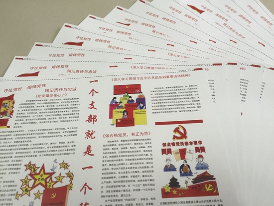 為深入開展“兩學(xué)一做”學(xué)習(xí)教育活動(dòng),充分調(diào)動(dòng)學(xué)生黨員學(xué)習(xí)積極性,發(fā)揮美術(shù)學(xué)院學(xué)生的專業(yè)優(yōu)勢(shì),美術(shù)學(xué)院學(xué)生黨支部自編刊物《我們的黨支部》推遲“兩學(xué)一做”專刊。專刊內(nèi)容主要收錄:《深入學(xué)習(xí)貫徹習(xí)近平總書記系列重要講話精神》、《把黨章印在心上》、《學(xué)習(xí)黨規(guī)黨紀(jì),樹立黨員標(biāo)尺》、《做合格黨員,身正為范》、《做合格黨員的四字秘訣》等內(nèi)容,以圖文并茂的形式展現(xiàn),方便學(xué)生黨員乃至教師黨員們傳閱。“學(xué)黨章黨規(guī)、學(xué)系列講話、做合格黨員”是黨員同志最重要的理論學(xué)習(xí),本年度《我們的黨支部》還將陸續(xù)推出“兩學(xué)一做”專刊。
