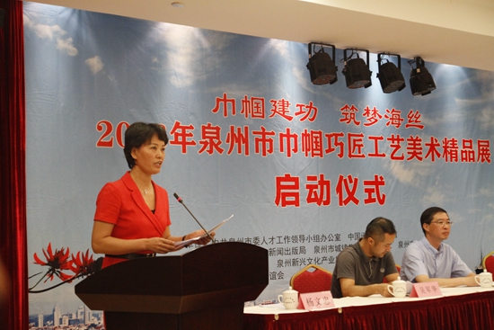 泉州經(jīng)濟網(wǎng)訊 8月23日上午,以“巾幗建功、筑夢海絲”為主題的“2016泉州市巾幗巧匠工藝美術(shù)精品展”作品征集在泉州市行政中心會議室正式啟動?,F(xiàn)場有市婦聯(lián)黨組書記、主席莊燦霞,市城聯(lián)社副主任蔡文雄,中國閩臺緣博物館副館長粘秋生,市文廣新局副調(diào)研員黃建明,市婦聯(lián)黨組成員、副調(diào)研員楊文忠;各縣(市、區(qū))委人才辦、文體新局、城聯(lián)社、婦聯(lián),開發(fā)區(qū)、臺商區(qū)黨工委人才辦、教育文體旅游局、婦工委負責人,部分參展作者代表,以及新聞媒體共100多人共同見證。