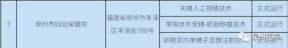 2017年4月18日,國家衛計委官網公布了全國經批準開展人類輔助生殖技術和設置人類精子庫的醫療機構名單。泉州市婦幼保健院生殖醫學中心名列其中,它是目前泉州市唯一一家獲批正式運營,具備資質能開展全面的人類輔助技術的生殖中心。