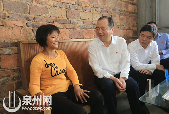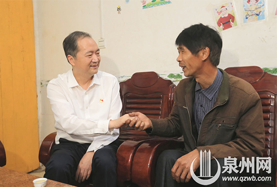 市委書記、市人大常委會主任鄭新聰,市委常委、秘書長翁祖根來到南安市金淘鎮中心村貧困戶陳羚羊家看望、慰問,鼓勵他們在各級政府的幫助下,通過家禽養殖等方式增加家庭收入,早日擺脫貧困。(陳起拓 攝)