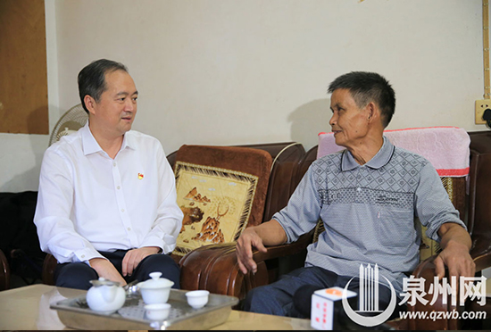鄭書記來到南安市金淘鎮金山村,看望貧困戶陳永星,鼓勵他用積極態度面對重大疾病,好好照顧自己的身體,在黨委政府的幫助下實現脫貧。(陳起拓 攝)