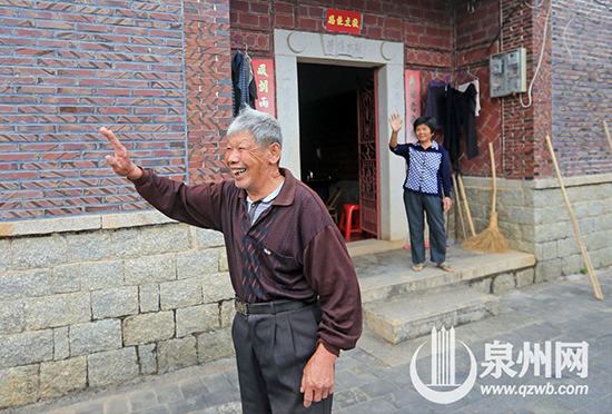 一番交心的談話讓貧困戶陳羚羊非常感動,鄭書記一行離開時,他和老伴特地走到門外揮手告別。(陳起拓 攝)