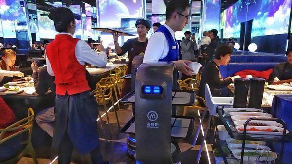 送菜機器人似乎并沒有幫助海底撈這家智慧門店節省多少人力