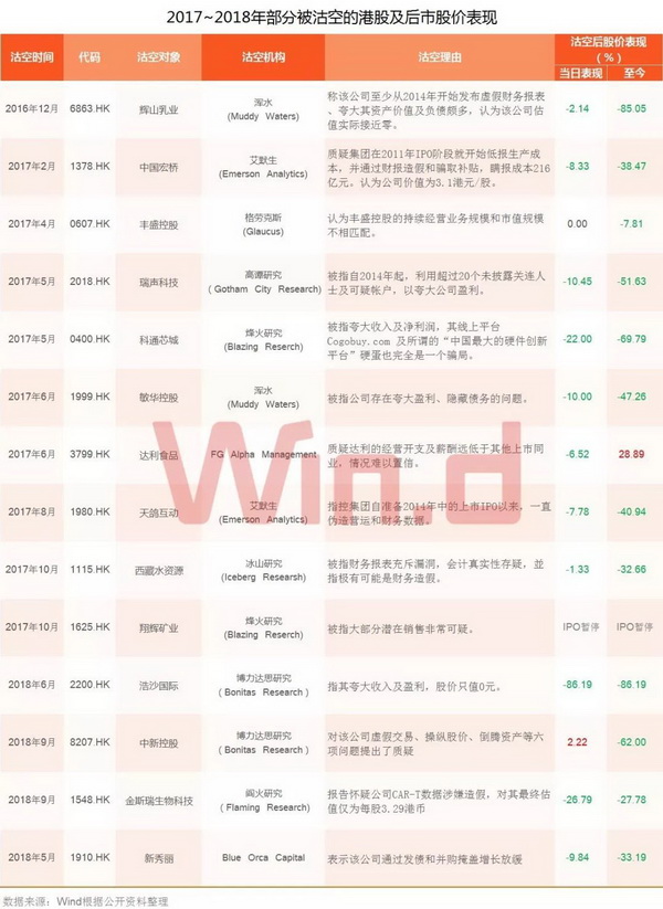 對于沽空機構的這一做法,投資者并不陌生。近幾年,渾水等沽空機構在市場上沽空中國企業的事已屢見不鮮。實際上,恒安國際并不“孤單”,據Wind不完全統計,在港股市場上,2017年至今已有14家港股上市公司曾遭遇了外資機構的“狙擊”。其中,達利食品、敏華控股、浩沙國際以及安踏體育、特步國際、361度等泉籍企業,都曾被沽空機構“盯上”。