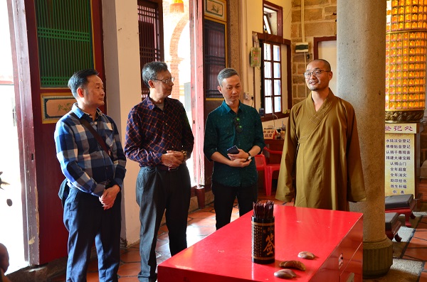 泉州經濟網訊 (圖文/肖思偉)4月9日,廣東省韓江書畫院澄海分院麥得茂院長率采風團一行19人,在福州市文化藝術交流協會李鑫副會長陪同下,到雪峰禪寺進行采風交流活動。福建省禪文化促進會會長、南安市佛教協會會長、雪峰寺住持法度法師熱情接待了采風團一行。