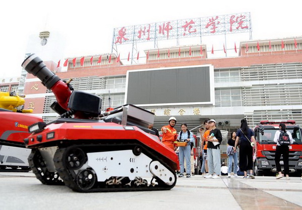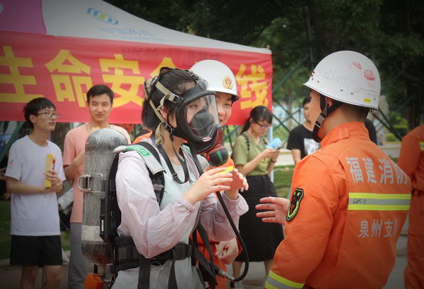 近日,泉州市消防救援支隊聯(lián)合團市委、教育局等部門聯(lián)合在泉州師范學(xué)院舉辦 “打通生命通道”體驗活動,1200余名師生和消防志愿者現(xiàn)場參加了體驗VR火災(zāi)場景、佩戴空氣呼吸器、操作滅火機器人等項目,共同開展了滅火疏散演練。消防員為師生們講解了火災(zāi)預(yù)防、火災(zāi)應(yīng)對等知識和常見消防器材的使用方法,并解答了大家在生活中遇到的消防安全問題。