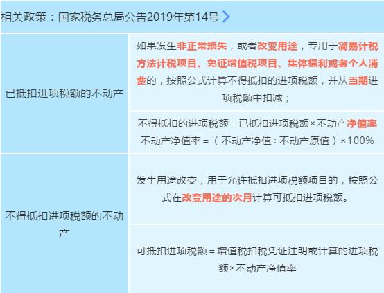 自2019年4月1日起,《營業稅改征增值稅試點有關事項的規定》(財稅〔2016〕36號印發)第一條第(四)項第1點、第二條第(一)項第1點停止執行,納稅人取得不動產或者不動產在建工程的進項稅額不再分2年抵扣。