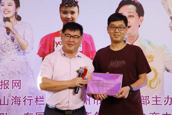由泉州電視臺(tái)優(yōu)秀閩南四句寫手、和諧樂(lè)章泉州文化站大茶古站長(zhǎng)為郭志杰、林建強(qiáng)、林玲頒發(fā)聘書。
