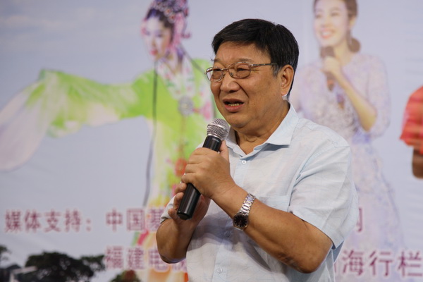 最后,相關(guān)代表發(fā)表講話。股東代表,即海絲新城和諧樂(lè)章文化聯(lián)絡(luò)處顏月清處長(zhǎng)講話;藝術(shù)家代表,即第六屆福建省曲藝家協(xié)會(huì)副主席、國(guó)家二級(jí)演員尤春成主席講話。