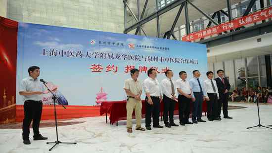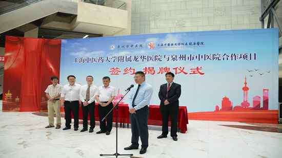 泉州市衛健委主任葉一帆、副主任蘇培聰,上海龍華醫院院長肖臻、副院長鄭培永、副院長張兵,泉州市中醫院黨委書記王家春、黨委副書記林振棟共同揭牌,泉州市中醫院正式掛牌成為上海中醫藥大學附屬龍華醫院合作共建醫院。