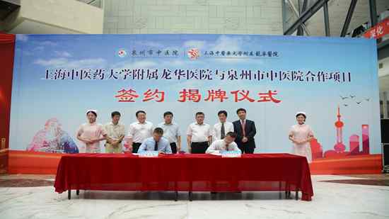 在到場人員的見證下,由上海龍華醫院院長肖臻、泉州市中醫院黨委書記王家春代表兩家醫院簽約。
