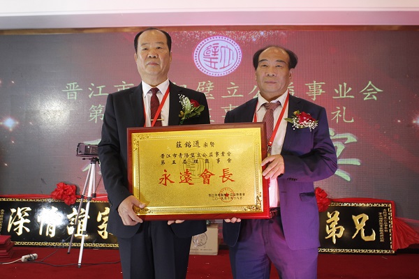 莊銘通永遠(yuǎn)會(huì)長致辭感謝為事業(yè)會(huì)默默貢獻(xiàn)的宗親們,并鼓勵(lì)全體宗親要繼承璧立立公樂善好施的遺風(fēng),發(fā)揚(yáng)“同心同德、愛黨愛鄉(xiāng)”的精神,以璧立宗親的團(tuán)結(jié)力量繼續(xù)為青陽公益事業(yè)做出貢獻(xiàn)。新上任的莊永烈理事長表示,將加強(qiáng)海內(nèi)外宗親間的聯(lián)系,團(tuán)結(jié)一心,共同建設(shè)青陽璧立公益事業(yè)會(huì)的美好明天。