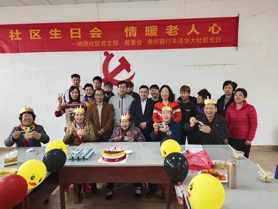 “每一個老人都應該被關愛。”地質社區居委會莊主任說,社區從今年開始,每月的15日定期把轄區內當月過生日60歲以上的老人聚集在一起,舉辦集體生日會,讓老人們走出家門,感受社區大家庭的溫暖。此次生日會,是他們聯合泉州銀行豐澤華大社區支行一起舉辦的。當天,社區工作人員還為老人講解了相關養老政策。