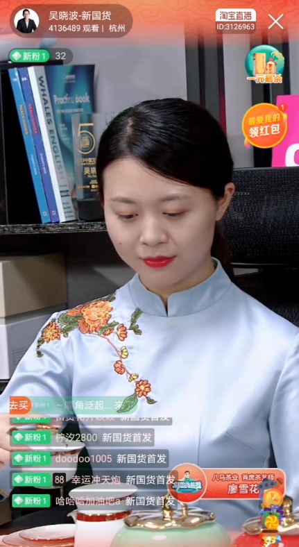 ▲八馬茶業(yè)亮相吳曉波新國(guó)貨直播首秀直播間