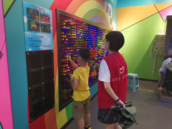 活動當天,在社工、志愿者和家長們的帶領下,華豐社區青少年參觀了科技館內地震專題展廳、兒童科學樂園、生命與健康展廳、環保展廳和綜合知識展廳等場館。