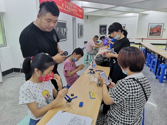 館內的高科技展示和游藝設備讓青少年們興奮不已,青少年們積極主動地上前體驗,部分青少年和家長還報名參加了場館內的親子彈力車活動,家長和孩子一起協作制作彈力車,比比誰的車能跑的更遠更快。