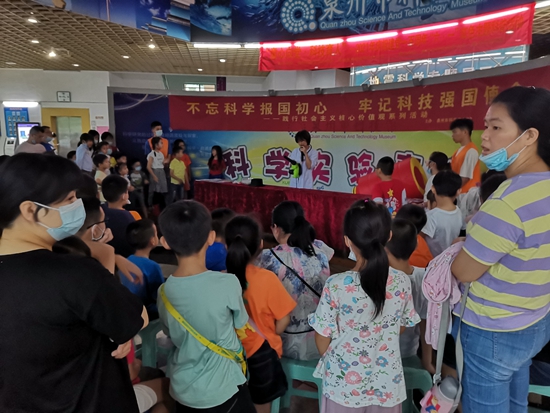 青少年在參觀中詳細了解地質構造、巖石的構成等科學知識,感受先進宇航科技成果,了解二維碼等發明為人們帶來的便利。