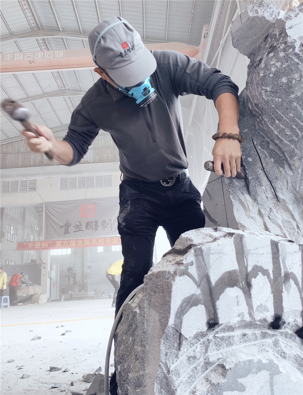 近年來,吳德強還面向全國高校畢業生傳承石雕技藝。2019年8月,他與《雕塑》雜志社合作,成功地舉辦“豐盈韻”第五屆高校畢業生石雕創作營,加強與高校藝術院校在人才培養、創新創造、學術交流等領域的合作,呈現惠安雕刻技藝,實現理論與實踐、人才與基地深度融合,也嘗試將藝術創新理念注入到企業文化塑造進程,為惠安雕藝提升發展做出有益的嘗試和提升。“從2019年開始,我們將連續舉辦三屆高校畢業生石雕創作營活動,在學生和企業之間構建互動交流的平臺。”吳德強認為,這不僅可以提高學生對石材性質、特點和工藝流程的認識,增強動手和實踐能力,開啟他們人生藝術之旅的第一次航行。