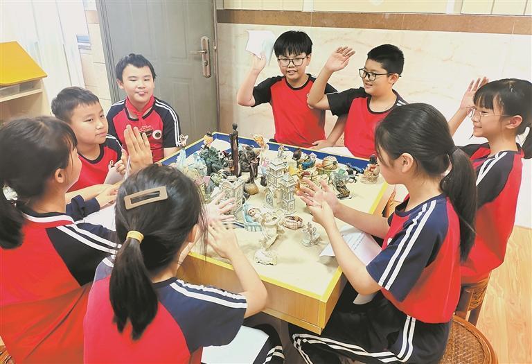 學生們利用午休時間,來到沙盤游戲室一起減壓,為自己充電再出發(fā)。(華泰實小 供圖)