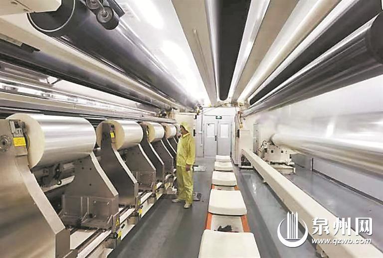 泉州嘉德利電子材料有限公司今年春節不停工。圖為工作人員在巡視全自動生產線。