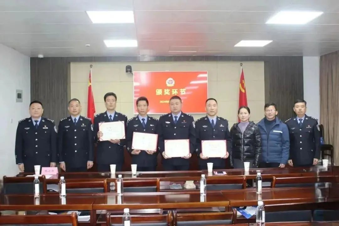 局黨委委員、政工室主任施文生,英林鎮政法委員、常務副鎮長丁錦茹,派出所所長許江洪向獲獎社區民警頒發榮譽證書