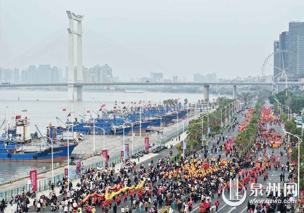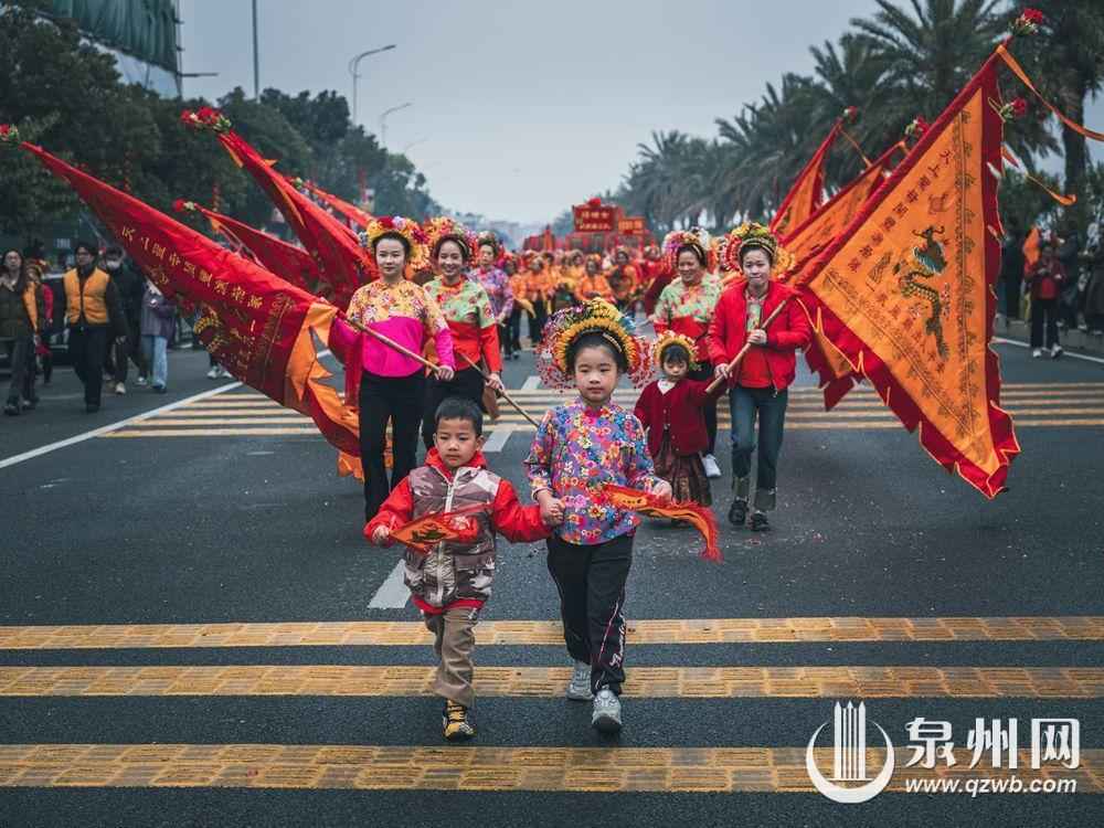 2024年3月9日,農(nóng)歷正月廿九,天色陰沉,冷風(fēng)吹得人直哆嗦,但泉州豐澤蟳埔民俗活動如期舉行,現(xiàn)場彩旗招展,鑼鼓喧天,紅飛翠舞,歡聲雷動。色彩繽紛的隊伍分成多個方陣,依次相接,人們身著盛裝,敲鑼打鼓,浩浩蕩蕩行進在豐海路,吸引市民、游客圍觀、拍攝。