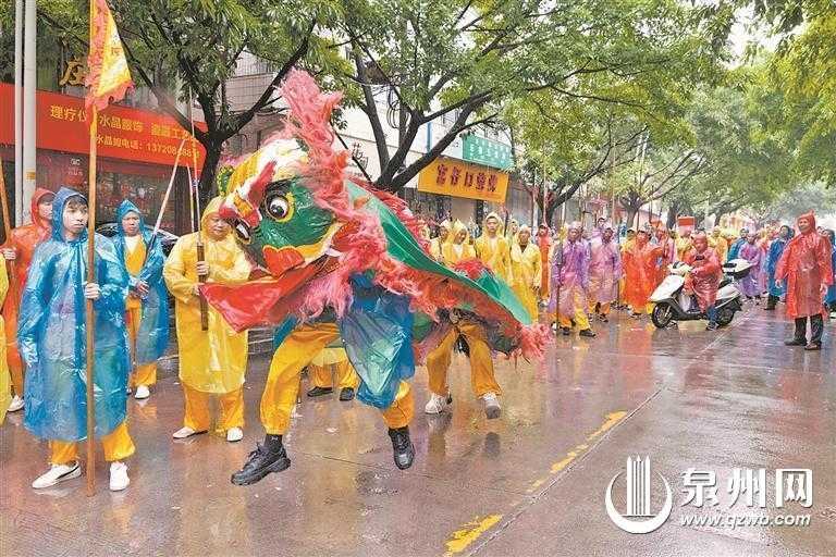 閩臺龍山寺龍年觀音信俗文化交流活動舉行,圖為刣獅陣亮相街頭。(融媒體記者彭燕珍 攝)