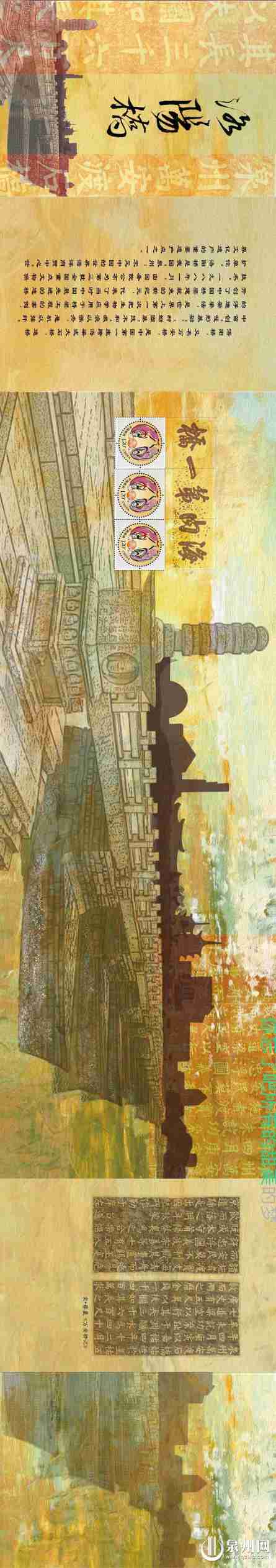 據(jù)介紹,在材質(zhì)上,《洛陽橋》郵票采用150克郵票紙,展示“海內(nèi)第一橋”的厚重歷史;在形式上,通過風(fēng)琴折的形制,詮釋洛陽橋“跨江接海、萬古安瀾”的雄渾氣度。在設(shè)計(jì)上,以宋代泉州太守蔡襄《萬安橋記》宋碑輔以洛陽古橋,突出長橋之遒麗。郵票中,在遠(yuǎn)景對岸處依稀可見泉州東西塔及眾多泉州古今建筑剪影,代表著貫通古今、海納百川的泉州文化內(nèi)涵。