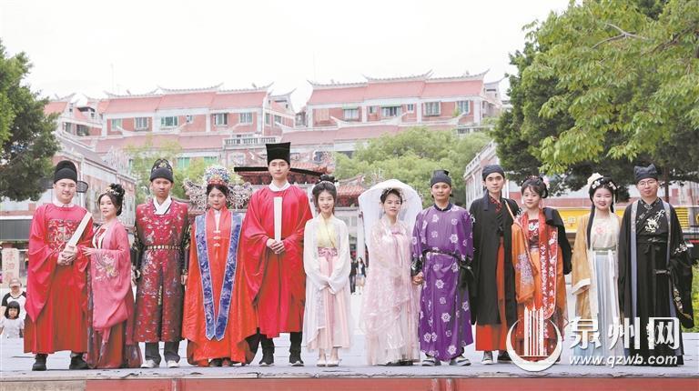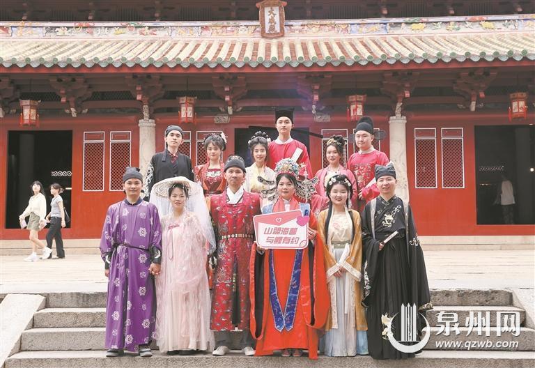 昨日下午2時許,6對新人坐著觀光“小白”來到泉州府文廟廣場。他們身穿精致的漢服,在氤氳著文化氣息與情感共鳴的泉州府文廟,體會婚姻的莊嚴,在祈愿墻上許下對彼此的真摯承諾和對未來的美好期望。