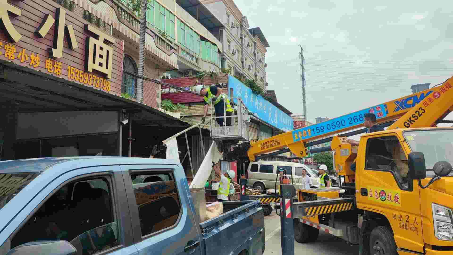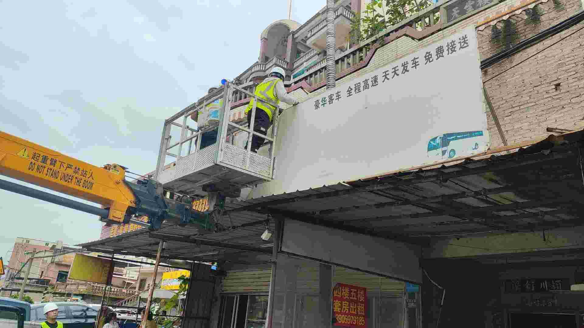 整治行動中,鎮綜合執法隊、保潔辦工作人員按照既定方案展開工作,先對沿路的老舊破損廣告牌和路邊廣告燈箱進行逐一排查,并出動大型機械,對存在安全隱患的廣告牌進行拆除,對路邊違規廣告燈箱進行暫扣。
