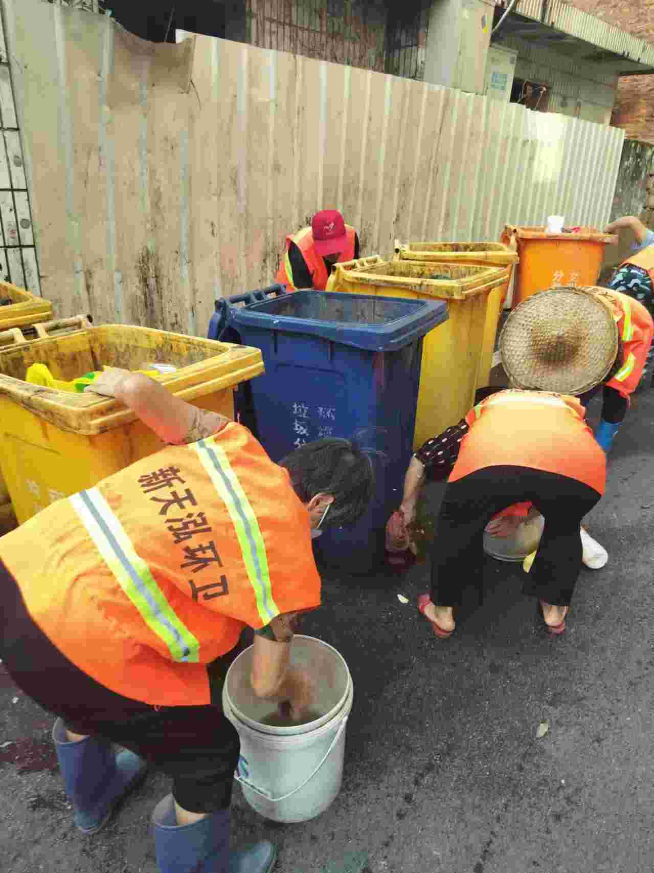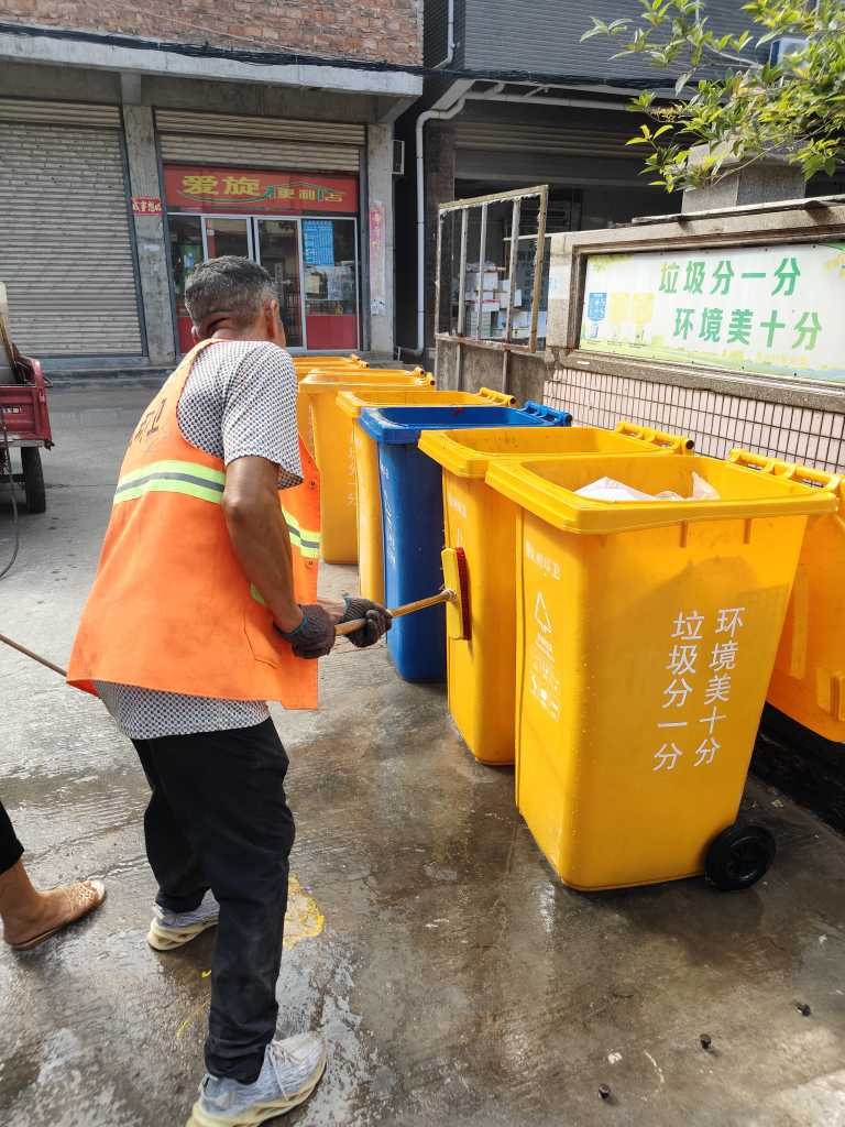 鎮環衛辦、保潔公司組織垃圾桶清洗隊,對沿路的垃圾桶進行了全面清洗,確保垃圾桶桶身整潔,周邊地面干凈,無異味散發,組織環衛工人和垃圾清運車對一些保潔盲區、衛生死角進行重點整治。