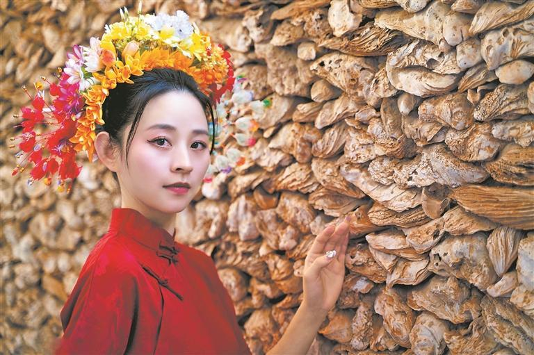 在泉州市豐澤區(qū)蟳埔村的晴天簪花圍工作室里,“豐澤區(qū)蟳埔女民俗文化推廣使者”黃麗泳,一邊忙著給游客扎簪花圍,一邊微笑著講述自己幫一眾明星梳頭簪花的經(jīng)歷。