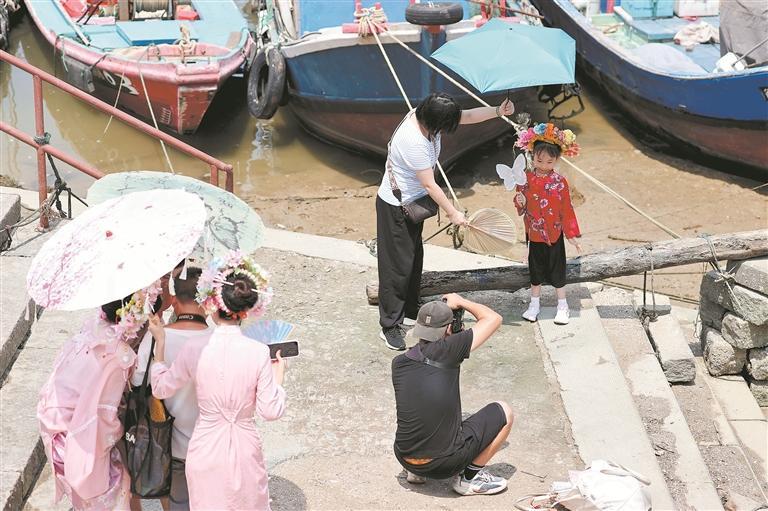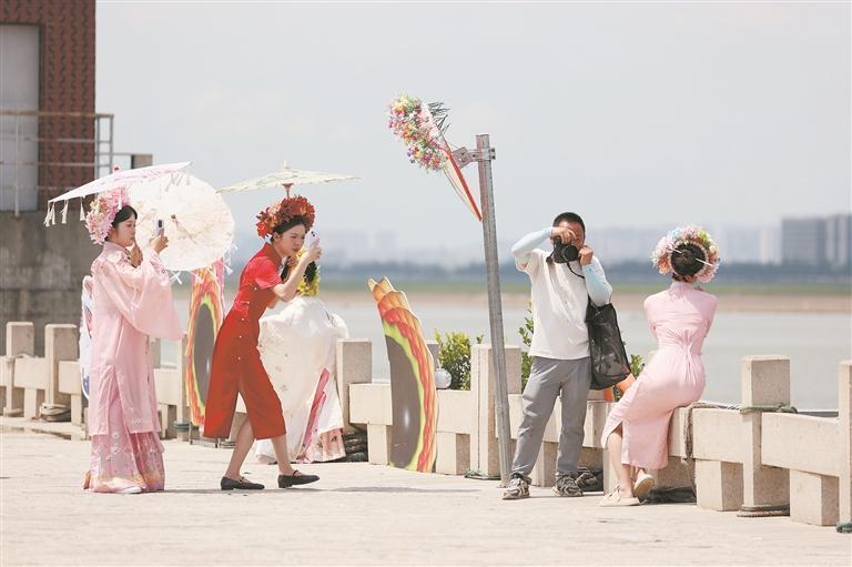 進入三伏,暑氣蒸騰,白天皮膚裸露在陽光下都有明顯的灼熱感。7月16日,在豐澤蟳埔,人們拍攝簪花美照的熱情并未消減。除了涂好防曬霜,傘具成了大家出行的標配。有的游客還特地選擇國風油紙傘,遮陽拍照一舉兩得。