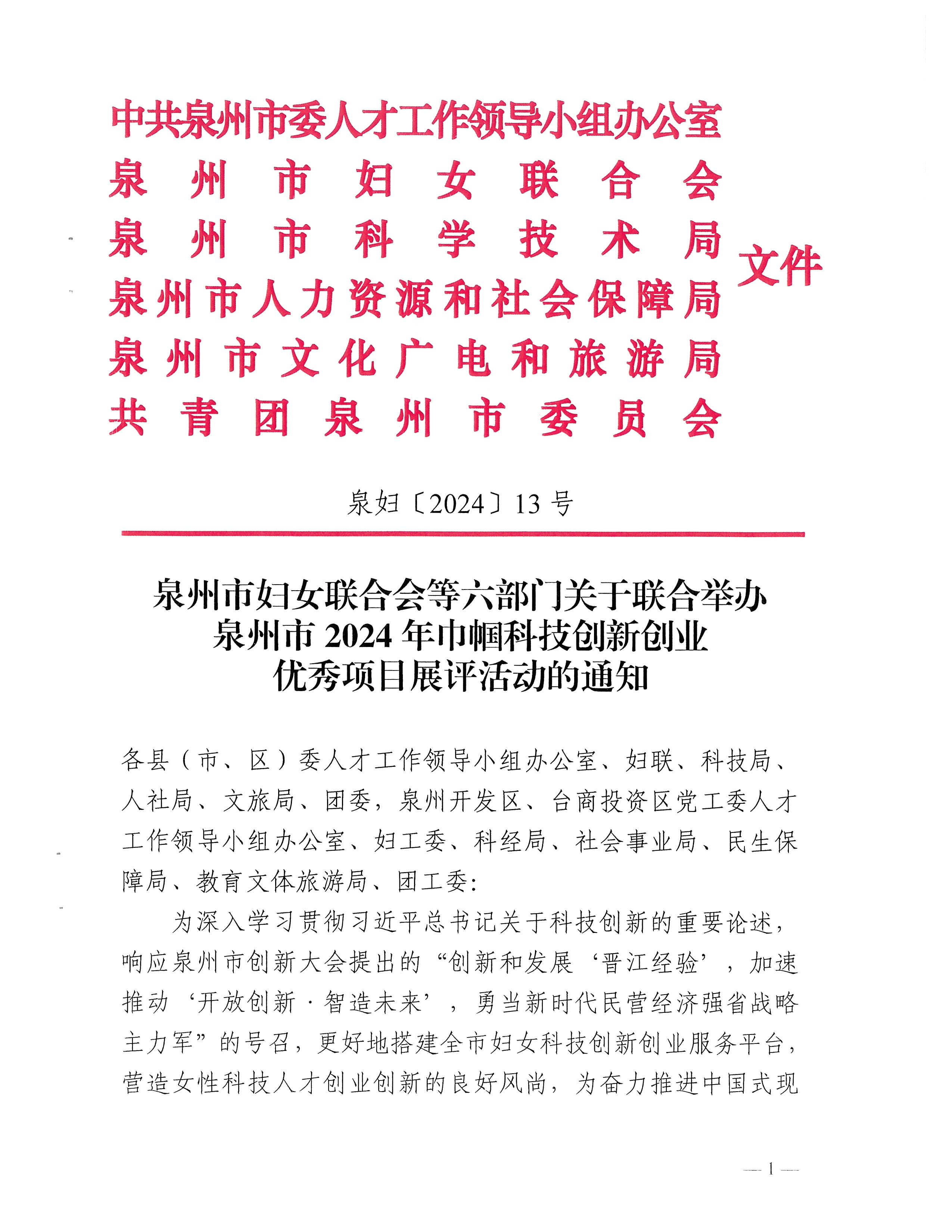 泉州市2024年巾幗科技創(chuàng)新創(chuàng)業(yè)優(yōu)秀項目展評活動征集令