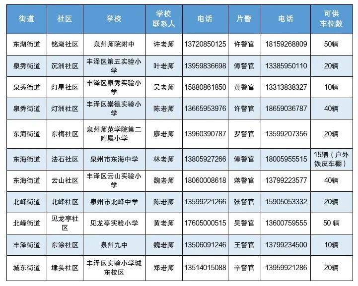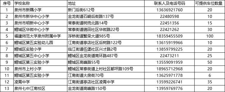 豐澤區(qū)臺(tái)風(fēng)期間免費(fèi)停車學(xué)校名單