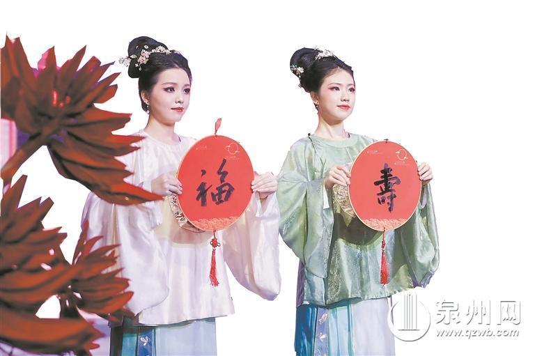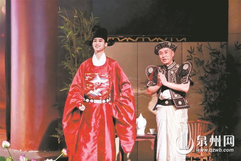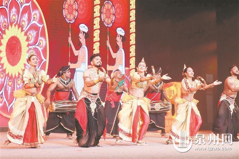 在兩名提燈侍女的指引下,“泉州知府”和“科特王子”登場,他們一邊品茶賞樂,一邊觀賞充滿異域風情的斯里蘭卡舞蹈、具有閩南特色的拍胸舞和南音等表演,一幅華彩“夜宴圖”徐徐展開。