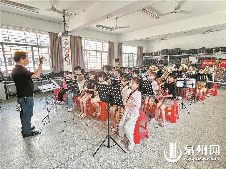 南安已有14所學校成立了校園管弦樂團,在碼頭鎮就有南安市詩南小學、南安市第二實驗小學兩所鄉村小學和南安市成功中學成立校園管樂團。樂團里的學生此前大多未接觸過銅管樂器。得益于愛心鄉賢、愛心企業的慷慨資助,學校購買樂器、聘請專業管樂老師,日常性開展公益樂團練習,為鄉村學生插上音樂的翅膀。