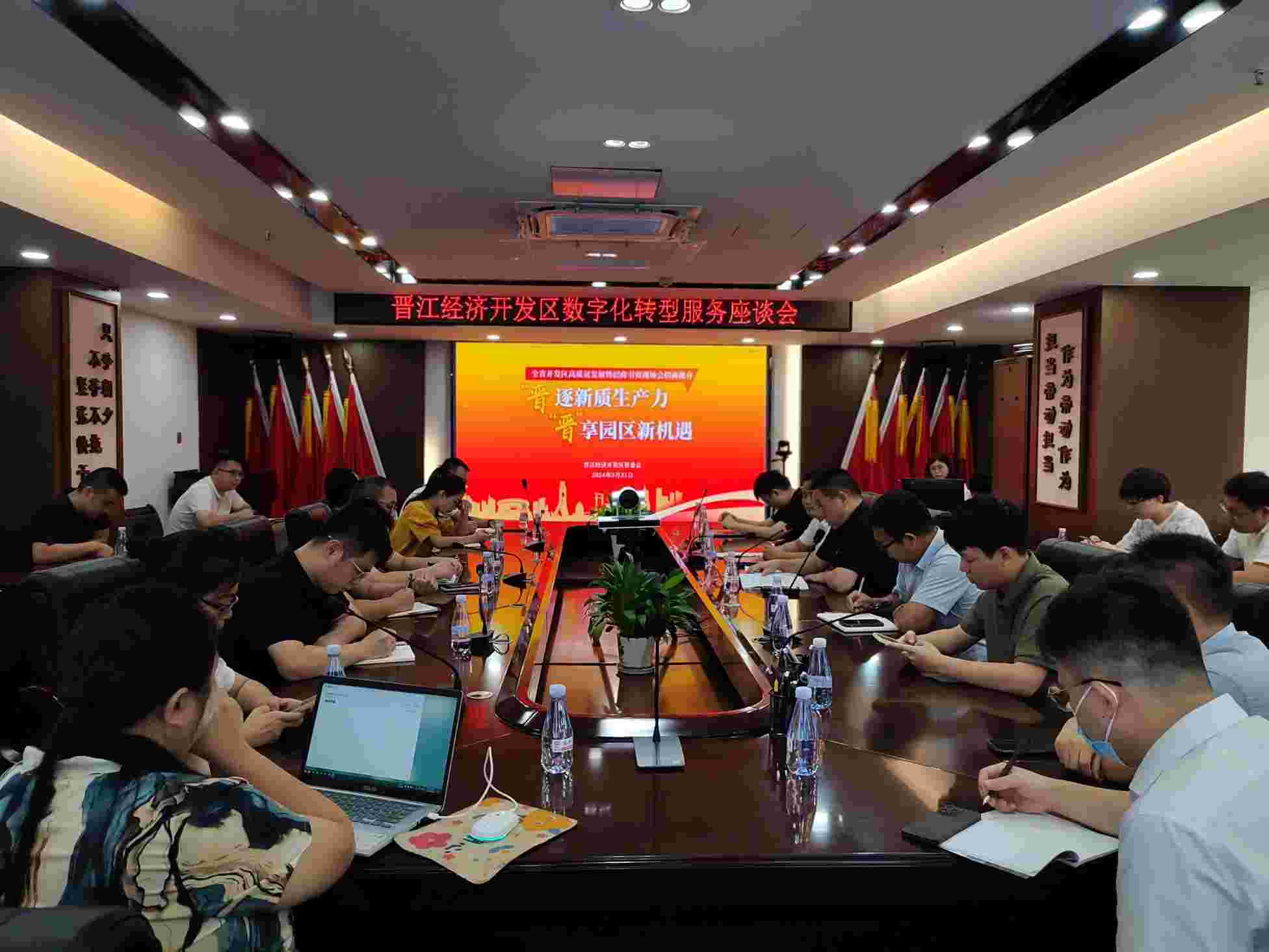 為深入實施創新驅動發展戰略,進一步完善提升晉江經濟開發區企業數字化服務水平,8月20日下午,舉辦晉江經濟開發區數字化轉型服務座談會。會議由晉江經濟開發區管委會黨組成員、一級主任科員饒一兵主持,管委會科技創新科科長李毅斌及科室成員參會,邀請十余家數字化轉型服務商代表參加會議,圍繞企業數字化改造相互交流,共謀發展路徑。