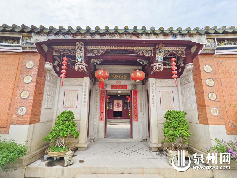 寶蓋鎮侖后村,古稱“侖峰”“錦里”,雅稱“錦峰”,系石獅市著名僑鄉,現有人口2600多人,原住民絕大多數為錦峰黃氏,旅居海外及港澳臺者3000余人。金墩黃氏,郡望“江夏”,堂號“金墩”。錦峰黃氏為金墩黃氏的一個支派。漫步侖后村內,只見多數民居大門匾上鐫刻著黃氏“江夏傳芳”或“金墩衍派”鎏金大字。據介紹,錦峰黃氏深以家族彪炳的歷史為榮,金墩黃氏始祖黃府于宋隆興元年(1163年)高中進士,淳熙元年(1174年)官至榮祿大夫、副都統,贈太師,為官公正清廉,征剿匪寇功勛卓著,宋寧宗御賜堂號“金墩”。金墩祖祠聯曰:“黃府進士四尚書,金墩入閣兩相國”,昭示著金墩家族的榮光。元時,黃府的六世孫黃鳳,承祖蔭薦辟泉州蒙古學教授,肇居晉邑二十四都侖后村,被尊為錦峰一世祖。