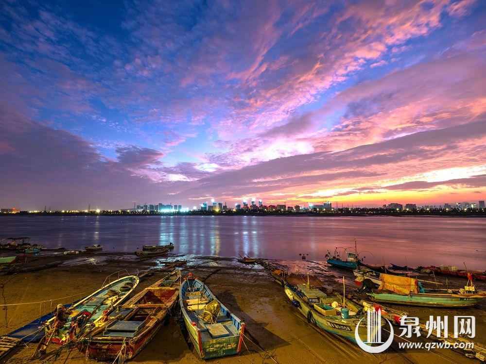 10月16日黃昏,市區西邊天空出現絢麗晚霞。在豐海路蟳埔段,佇立江邊,往晉江母親河對岸望,彩霞在天際線上不停變幻,令人大飽眼福。(融媒體記者陳起拓攝)