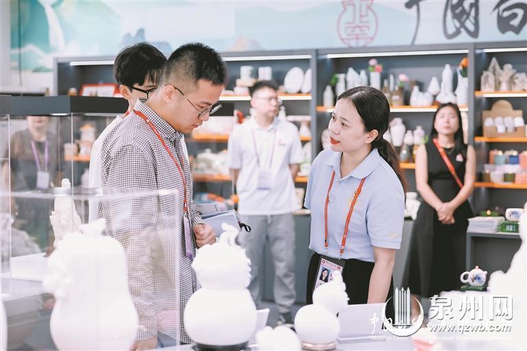 本屆廣交會,德化縣設置“中國白·德化瓷”集中展示區,展出工藝瓷、日用瓷、大師瓷等大量陶瓷精品,并組織了103家陶瓷企業參展、設置展位242個。此外,還有30多家企業在錦漢館設展面積約2000㎡,展品種類豐富、題材廣泛、精品迭出。此次展會,既是一次親近德化白瓷的難得機遇,也是一次縱享陶瓷藝術的文化盛宴,吸引了眾多國內外客商駐足觀賞、洽談合作。