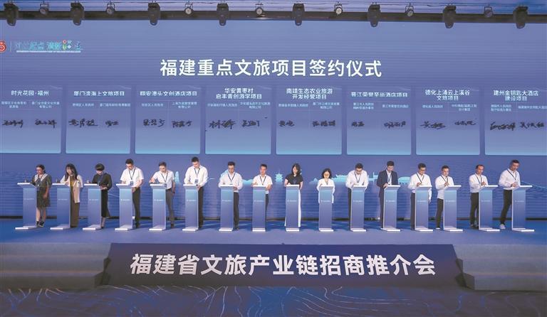 同日下午舉行的省文旅產業鏈招商推介會上,我市收獲滿滿,成功簽約5個項目,總投資額30.6億元,位列全省第一。其中超億元項目有四個,分別是晉江市榮譽至尚酒店項目、泉州非遺文化城、石獅宋元海絲美食文化園、德化上涌云上溪谷文旅項目等,這些項目十分有特色。晉江市榮譽至尚酒店項目,總投資10億元,項目位于晉江市梅嶺街道,擬按照高端五星級酒店標準建設,由全球頂尖設計公司負責室內打造,融入閩南與現代文化、海洋與海絲等元素。泉州非遺文化城項目總投資4億元,占地面積25000平方米,擬增設文化音樂展演露天舞臺,建設非遺文化音樂藝術廣場及非遺文化旅游特色集市及中型室內劇院,連接蟳埔民俗街。石獅宋元海絲美食文化園項目,總占地面積105畝,擬打造以宋元海絲宴美食品鑒為主,集閩南民俗體驗、僑文化交流、煙火小吃餐飲等于一體的宋元海絲文化沉浸式體驗館。德化上涌云上溪谷文旅項目,總投資8億元,擬在德化縣上涌鎮云路村投資建設樹屋群、無邊游泳池、林間“舞臺空間”等野奢民宿文旅項目,打造自然文化的靈魂聚居地、樂享山水田園的休閑驛站。