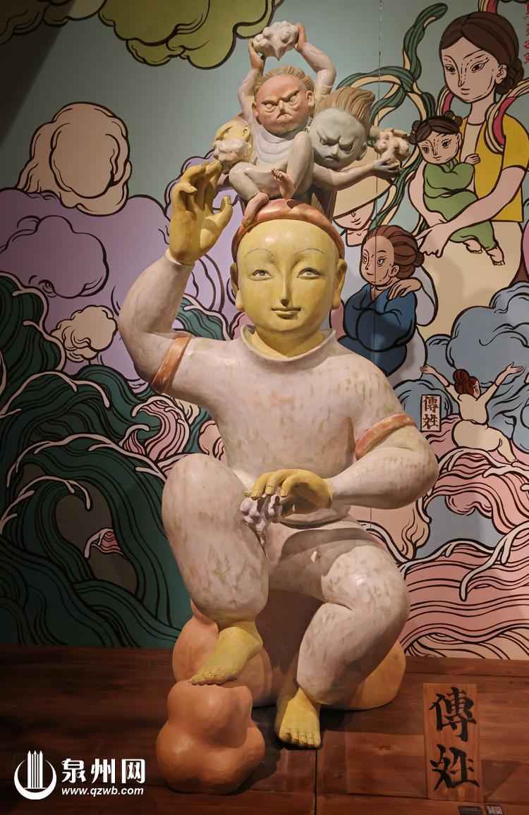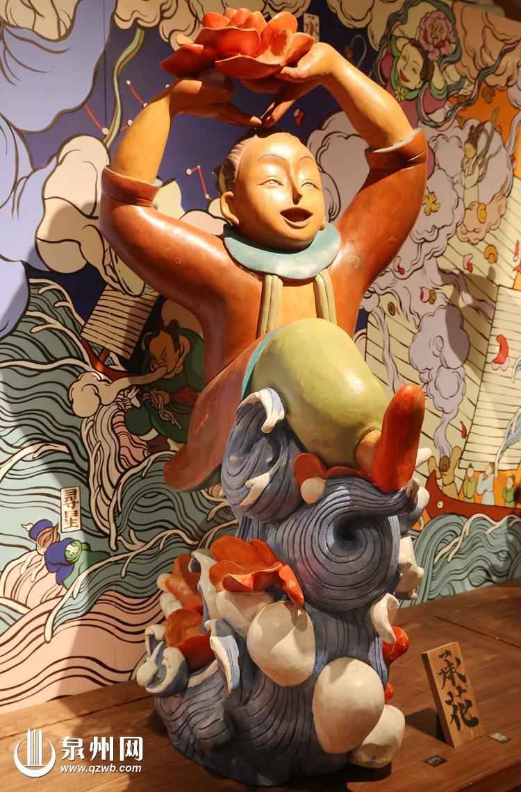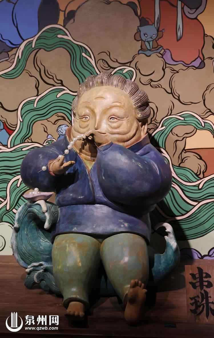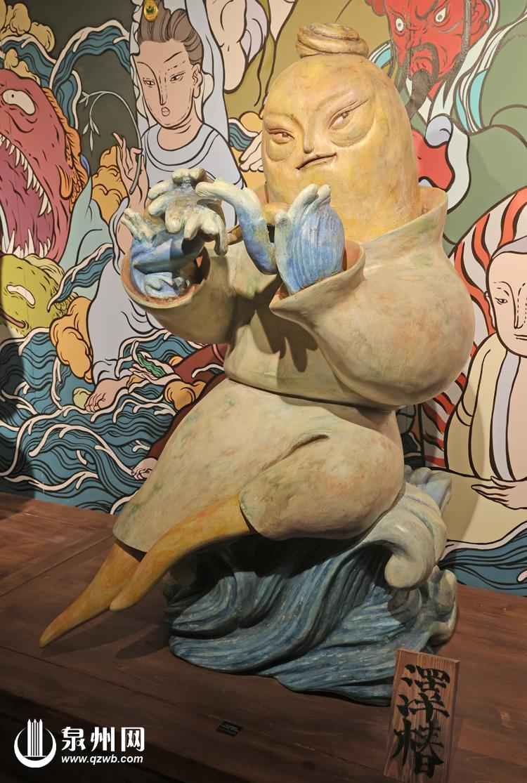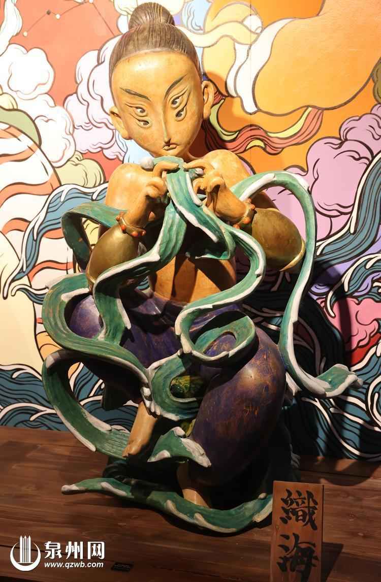 “這些神仙的故事都是我自己編的,雕塑背后壁畫(huà)上的神仙則是泉州流傳過(guò)的神仙。”文那說(shuō),閩南雖有很多神話,但沒(méi)有一個(gè)系統(tǒng)的創(chuàng)世神話。她通過(guò)壁畫(huà)上既往“神靈”的再現(xiàn)和新“神靈”的創(chuàng)造,借由海絲文化,描繪了一個(gè)史詩(shī)般的“閩南創(chuàng)世神話”。