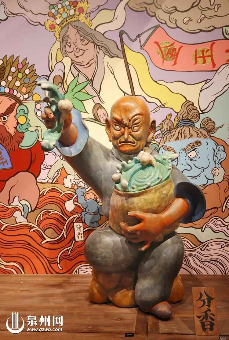 壁畫(huà)和閩南木雕造像交相輝映,各位“自創(chuàng)神仙”排列有序。