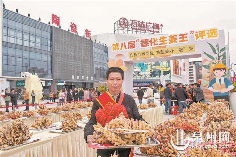 昨日,第二屆福建省“環戴云山”綠色經濟產業區域聯盟年會暨第八屆德化(大銘)生姜文化旅游節在德化瓷藝城舉辦?;顒蝇F場,來自全縣18個鄉鎮100多戶生姜種植戶參加評比,擺在評比區的生姜個大飽滿、色澤金黃。經過專家評比,大銘鄉瓊山村選送的一塊13.72斤生姜喜獲金獎,成為2024年度德化“生姜王”。