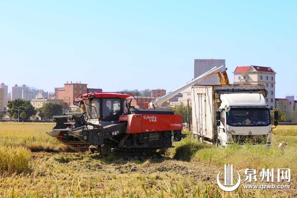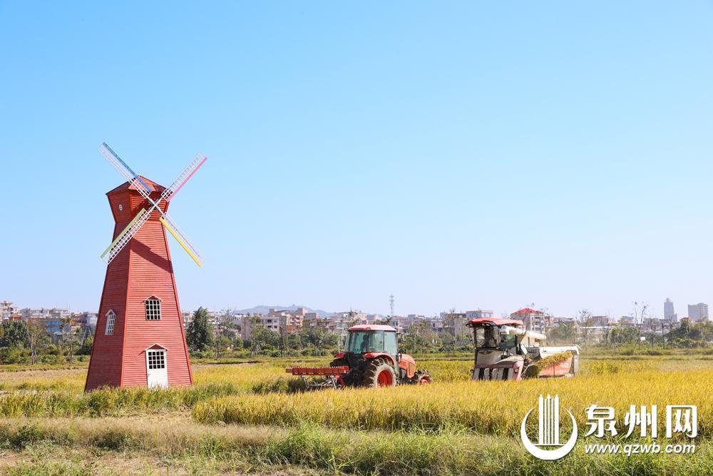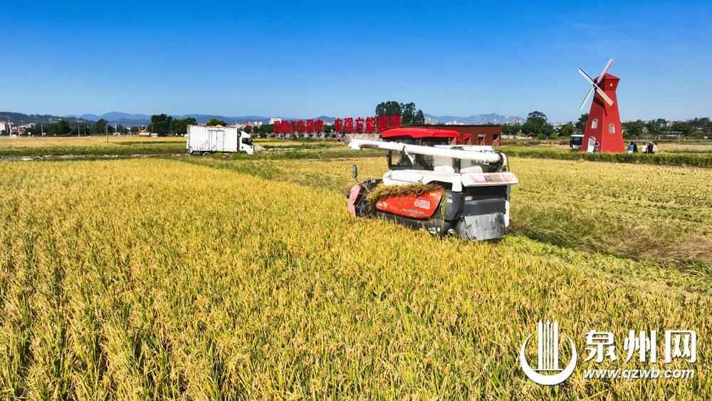 豐收時節,稻田金黃,到處是一派豐收的景象。近日,泉州各地的晚稻陸續進入收割期,稻田里一片忙碌收割的景象,處處洋溢著豐收的喜悅。