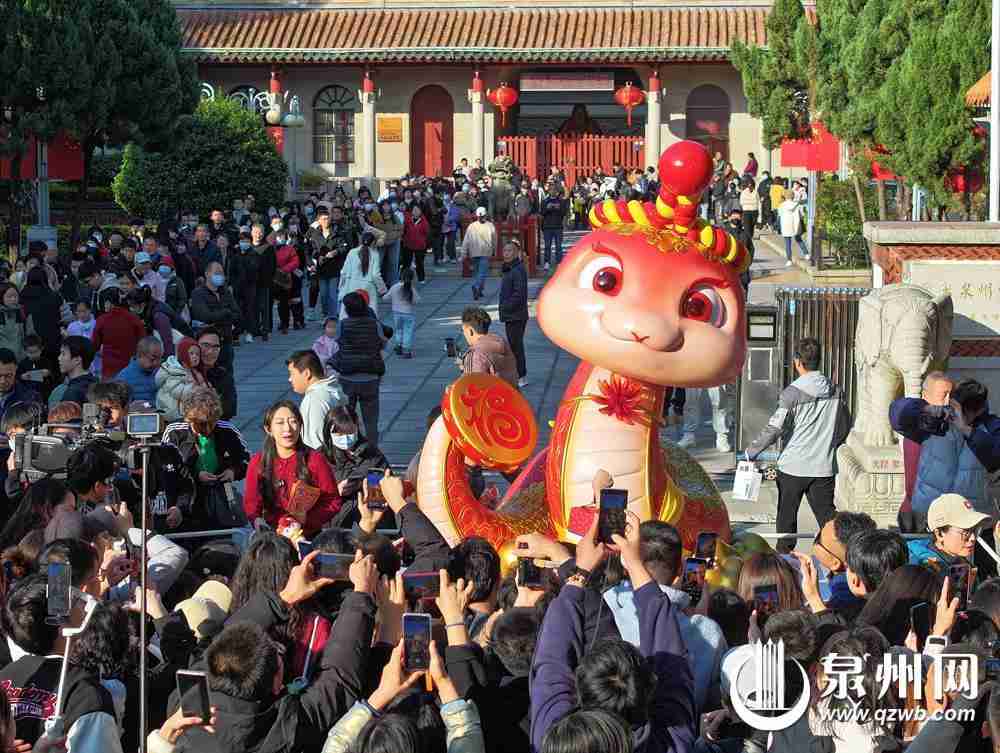 “海海”跳著拍胸舞來了,跟著大家一起“拍”走煩惱,“拍”來福氣。昨日,泉州蛇年生肖IP“七彩刺桐蛇”藝術裝置第三個作品“海海”出街,正式落座泉州市區威遠樓。